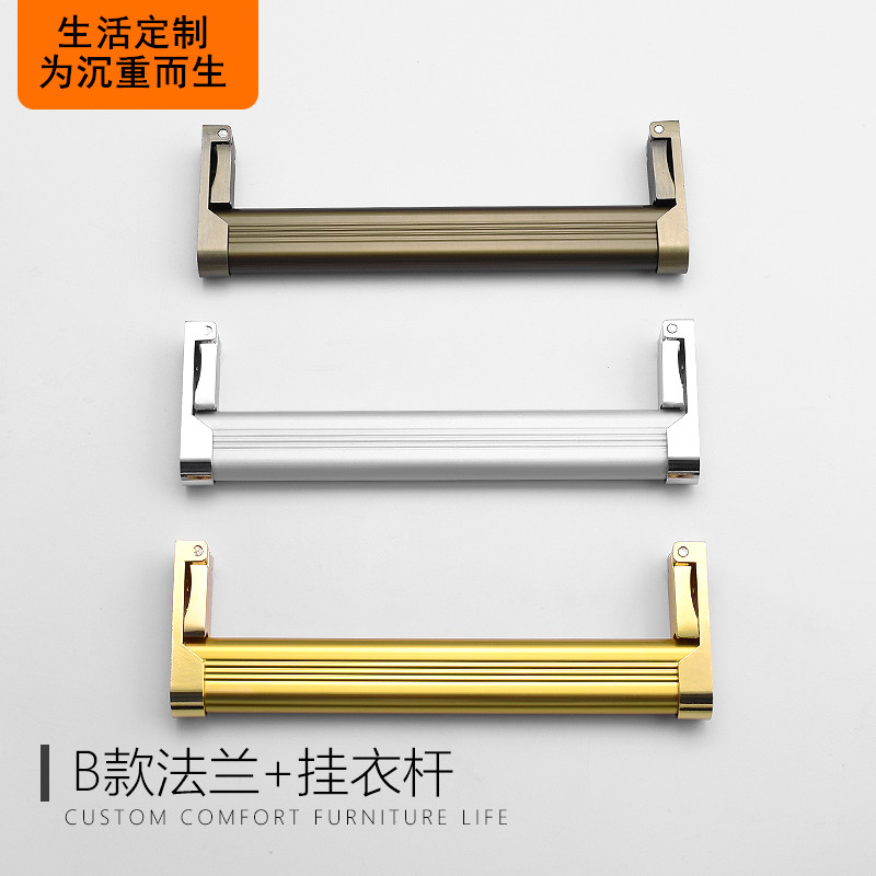 Thickened wardrobe clothes rail horizontal bar cabinet inner hanging rod aluminum alloy flat tube clothes hanger clothes rail single pole pick support clothes rail