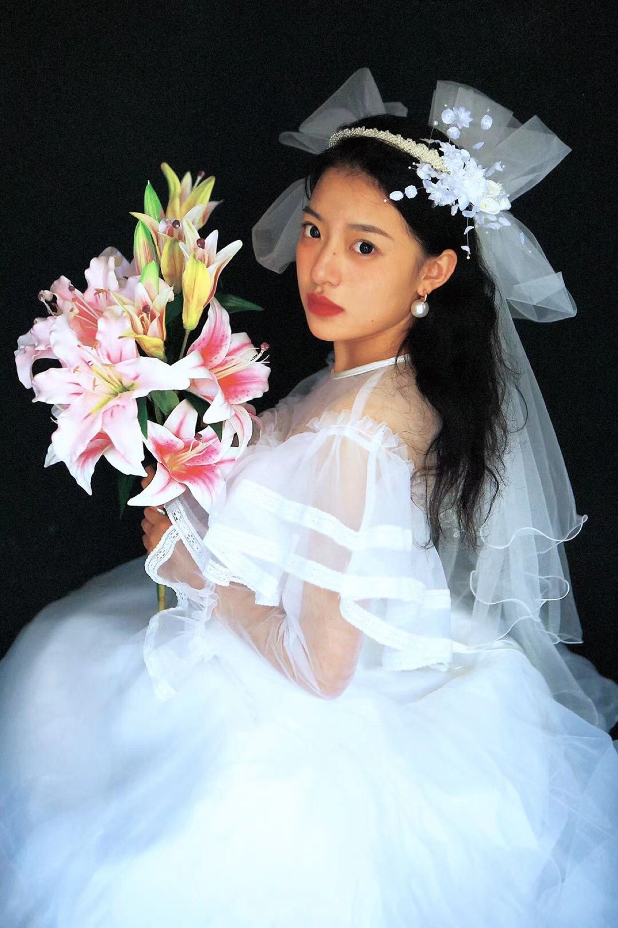 Qinghe hovintage antique head yarn re-carved pearl heavy industry bow net red photo lace head yarn