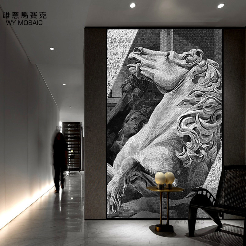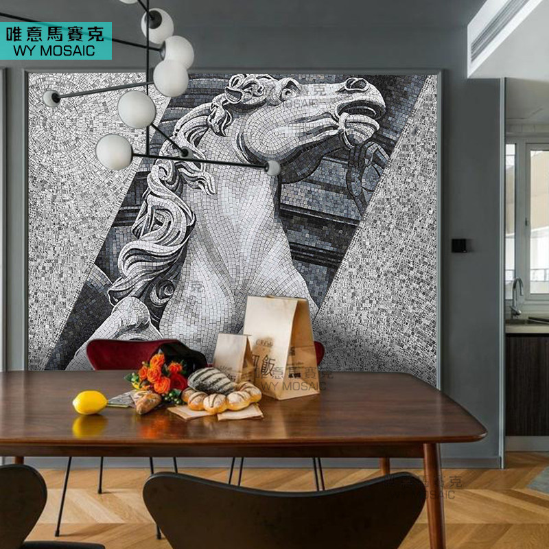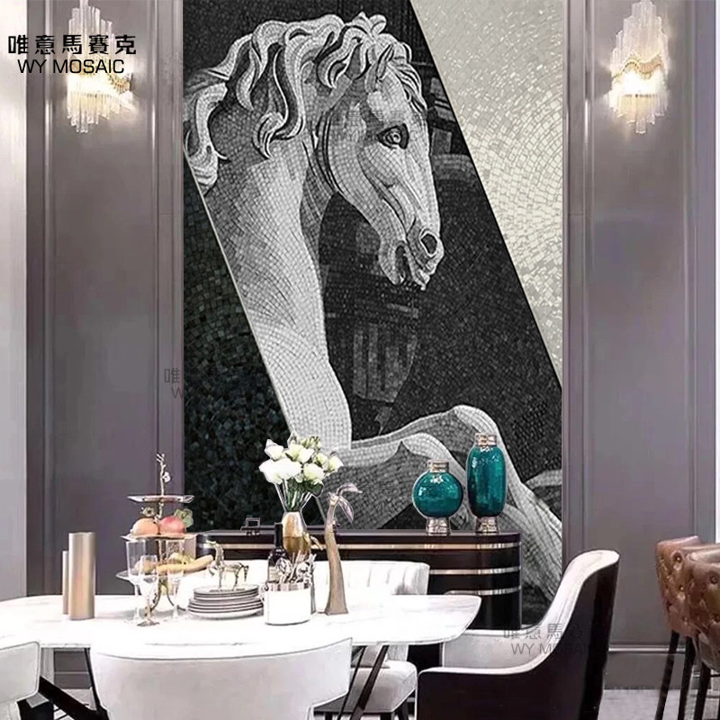 Horse head mosaic background wall custom simple modern living room entrance aisle background puzzle cut painting tiles