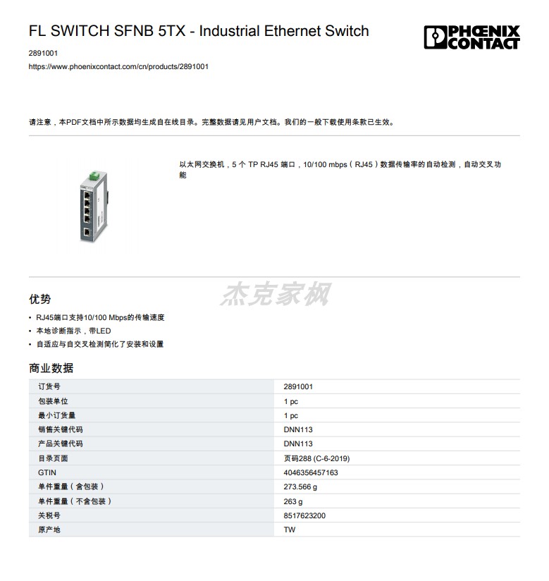 Phoenix Ethernet Switch FL SWITCH SFNB 5TX-2891001 Industrial Switch Special Price-Taobao