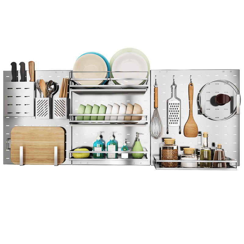 Kitchen wall-mounted dongle plate 304 stainless steel shelve containing wall pendant hanging rack Bowl Rack Seasoning Knife Rest