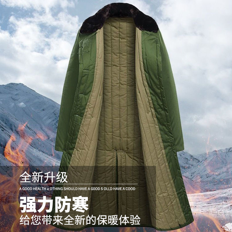 Cotton coat men's winter thickened with velvety long version of large coat security anti-cold wear green cotton clothes cold storage cottonpadded jacket