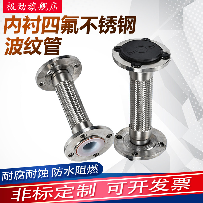 Stainless steel flange soft connection inner lining corrosion resistant PTFE Teflon PTFE metal braided outer mesh telescopic hose