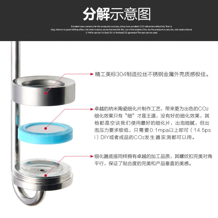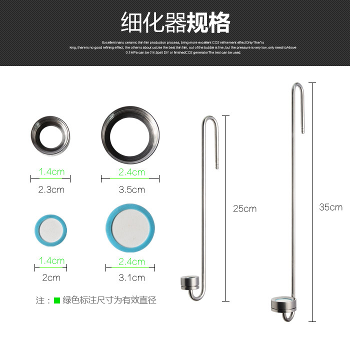 US standard 304 Aquarium carbon dioxide cylinder dedicated stainless steel CO2 refiner ultra - fine external atomizer