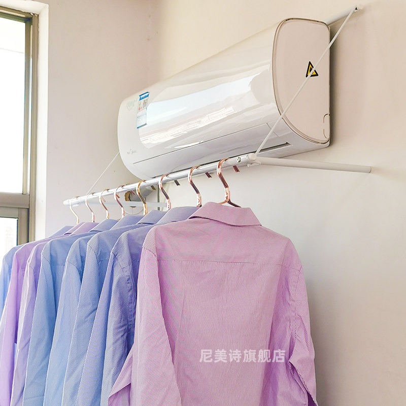 Air conditioning outlet drying rack household punch-free cold clothes rack single pole dormitory drying clothes artifact can be folded