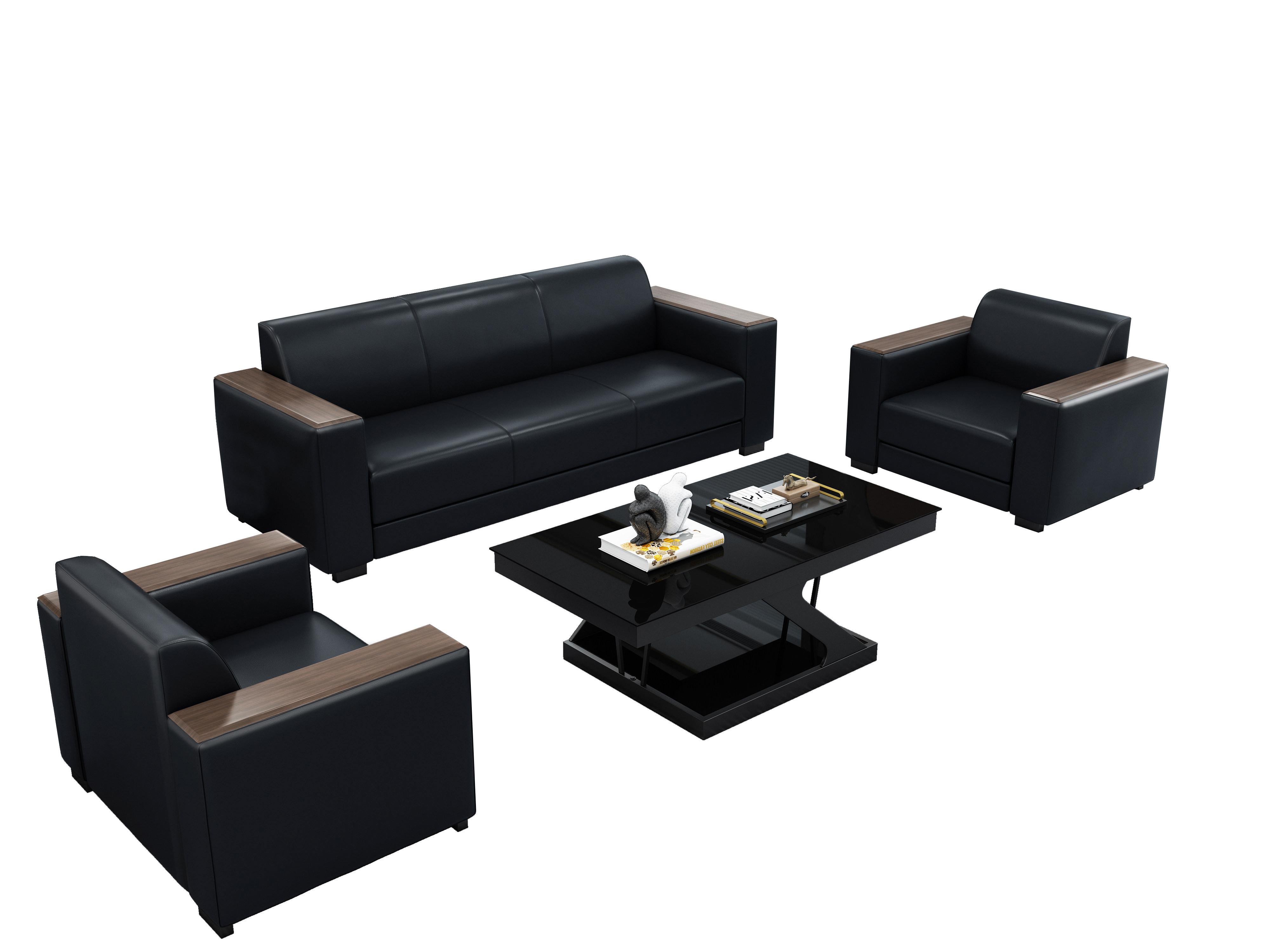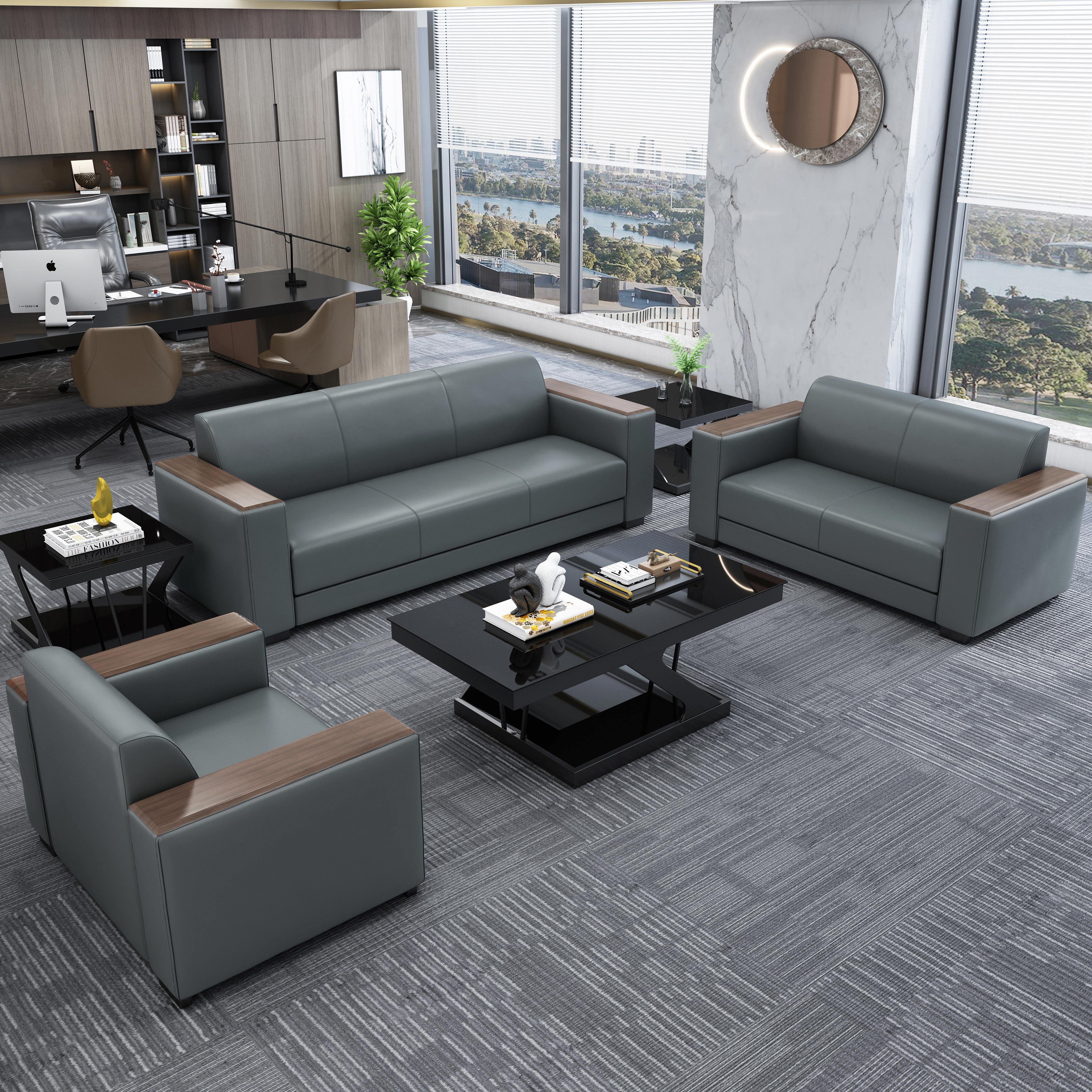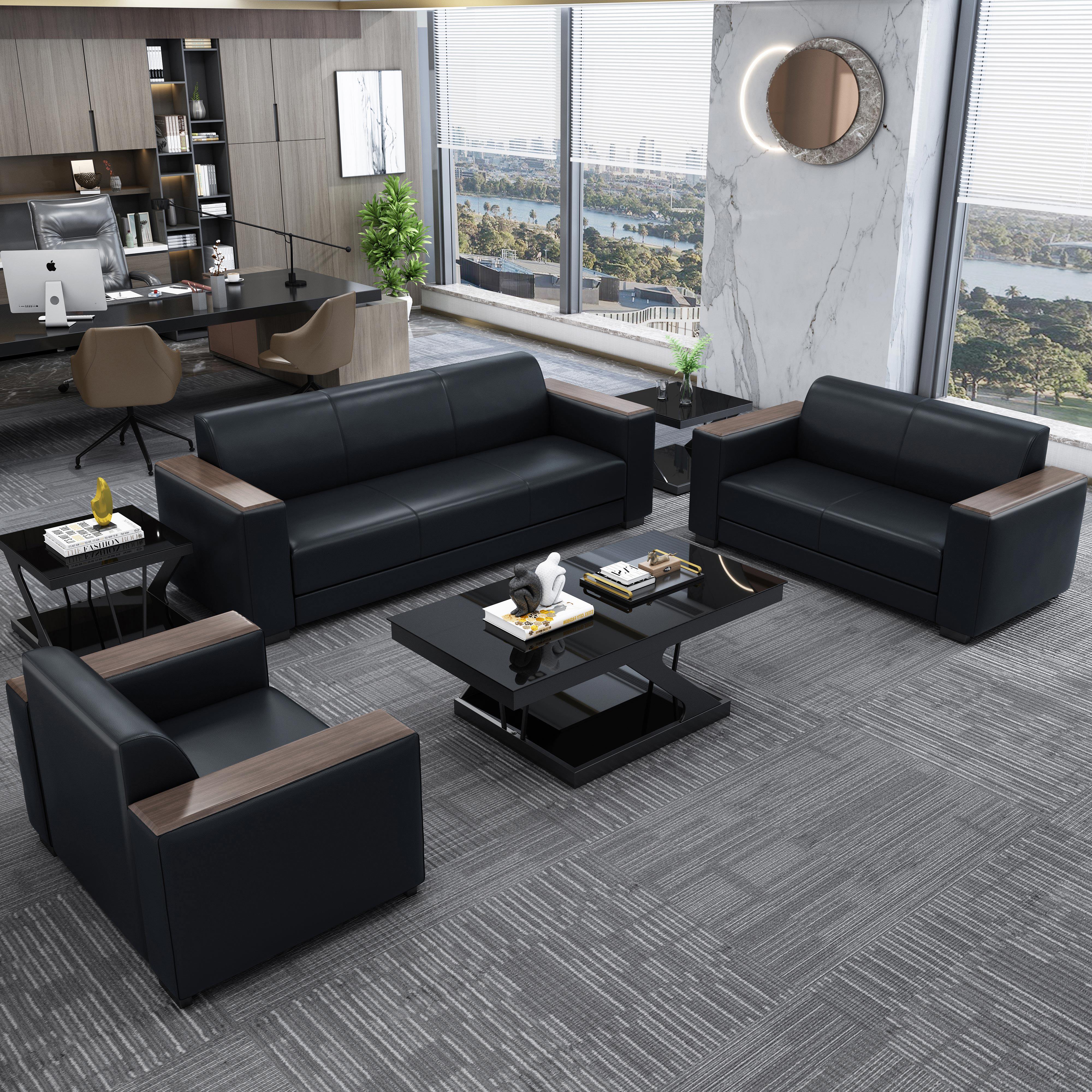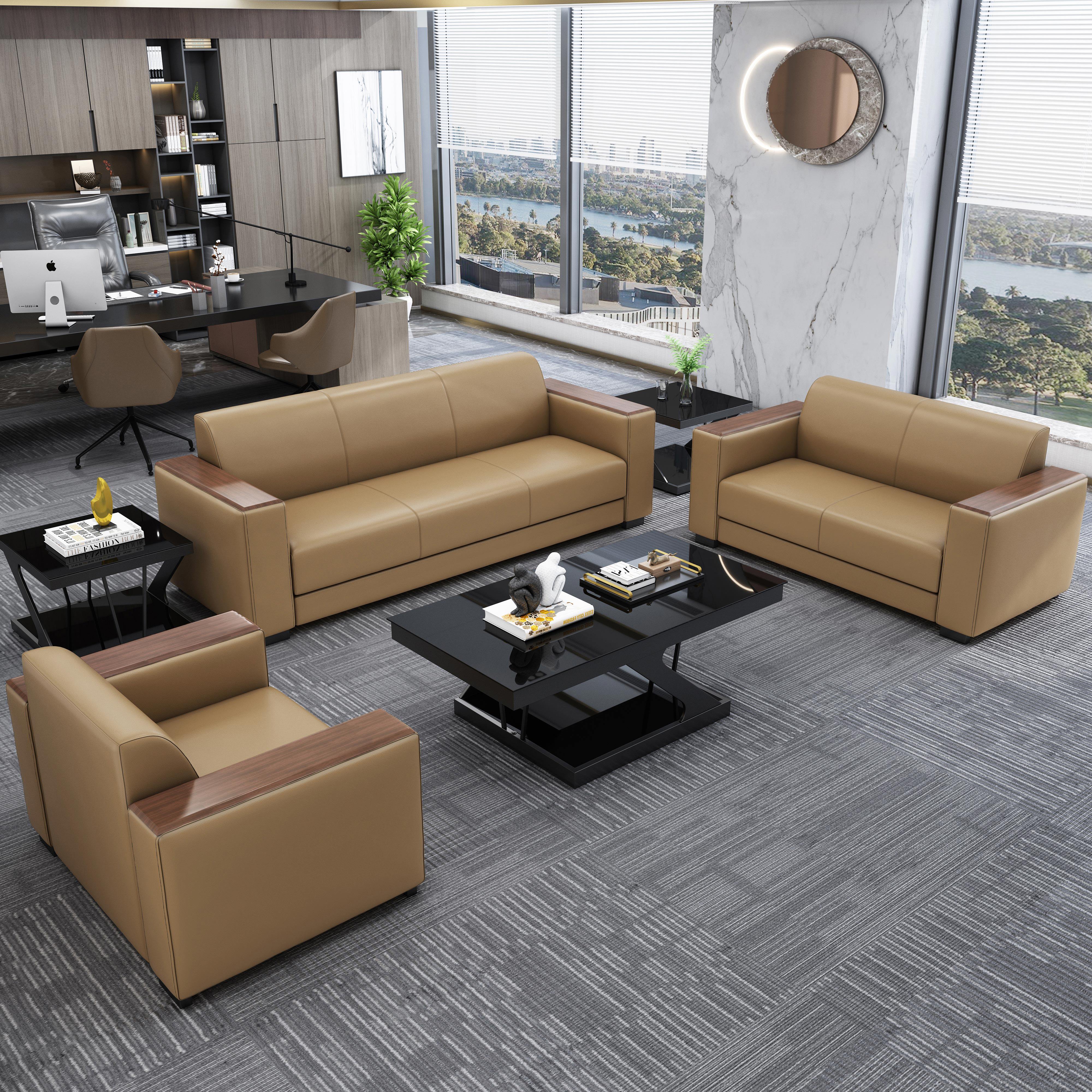 Business office sofa coffee table combination office area reception area negotiation lounge leather art three-seat leather sofa