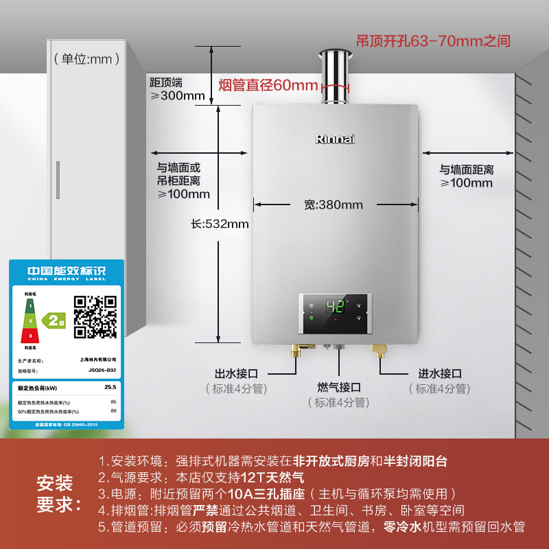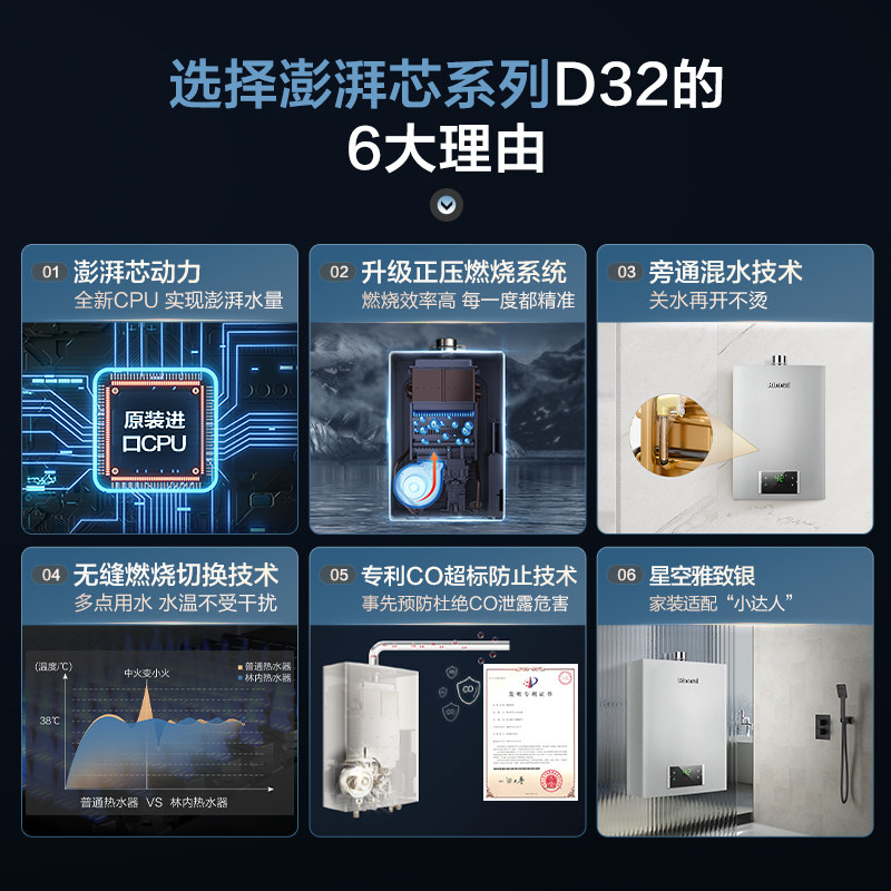Linnei D32 gas water heater 13 liters of natural gas home constant temperature low noise safety large water volume strong discharge official