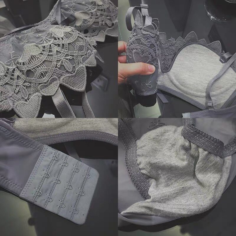 Sexy Lace Underwear Women's No Steel Rings Small Breasts Gathering and Paired Breasts Adjustable Embroidery Show Big Bra Set Confused - Taobao