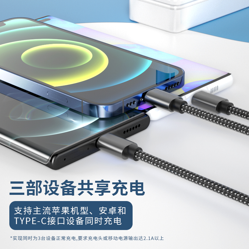 Data line Three-in-one quick-charging one-and-three-charge wire instrumental phone two-in-one vehicle all-purpose versatile universal multi-head multifunctional application Apple Huawei type-c Android third-tier usb triple use