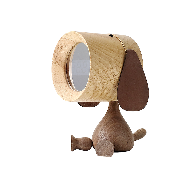 Several people design solid wood cute puppy alarm clock student children's gift bedside desktop cartoon charging creative lettering