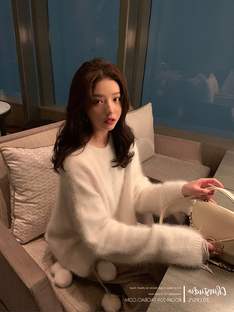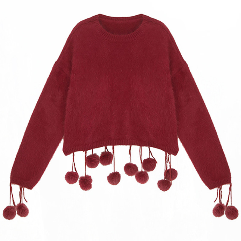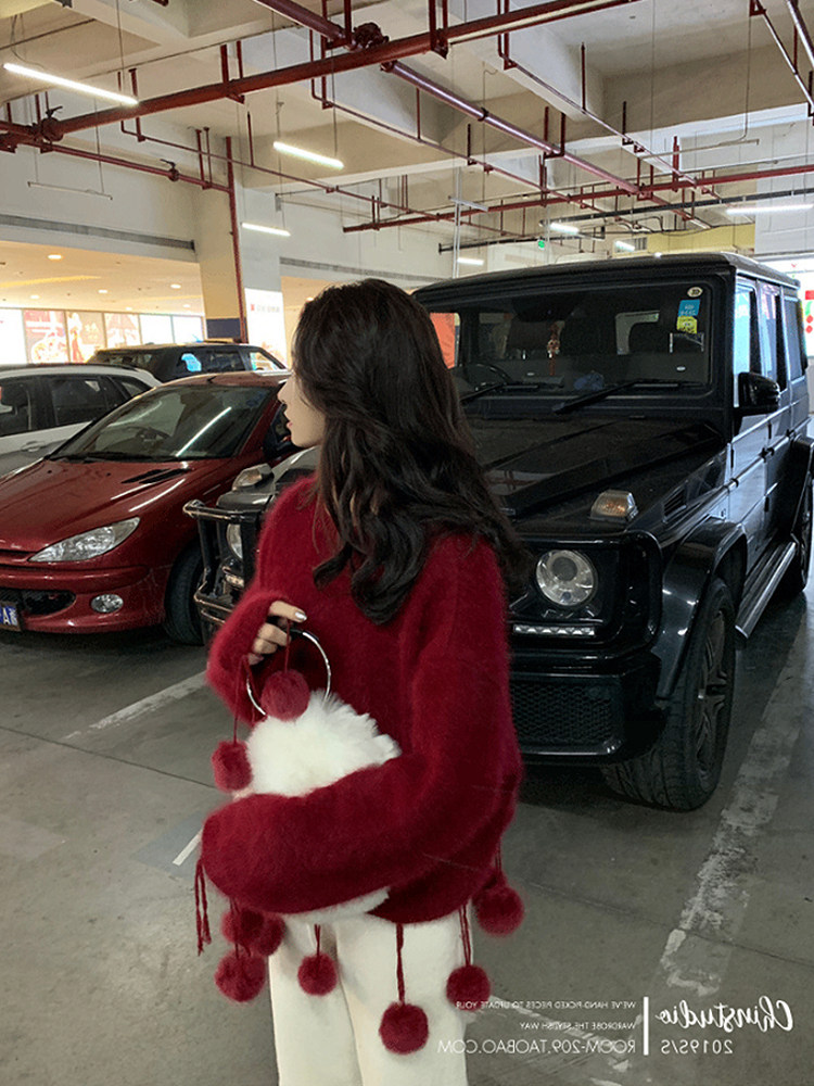 2022 Winter new round - leads Soviet Marine Red Sweater woman loose Christmas sweet mink coat