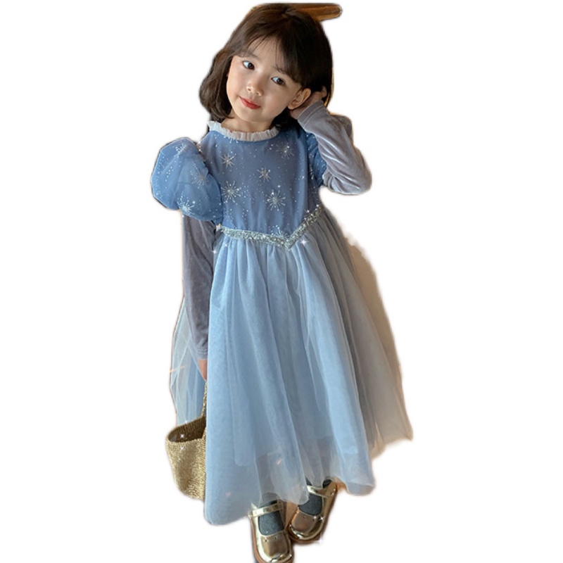 Princess Aisha skirt 2022 spring and autumn new Korean version children's Western style girls velvet mesh skirt baby dress