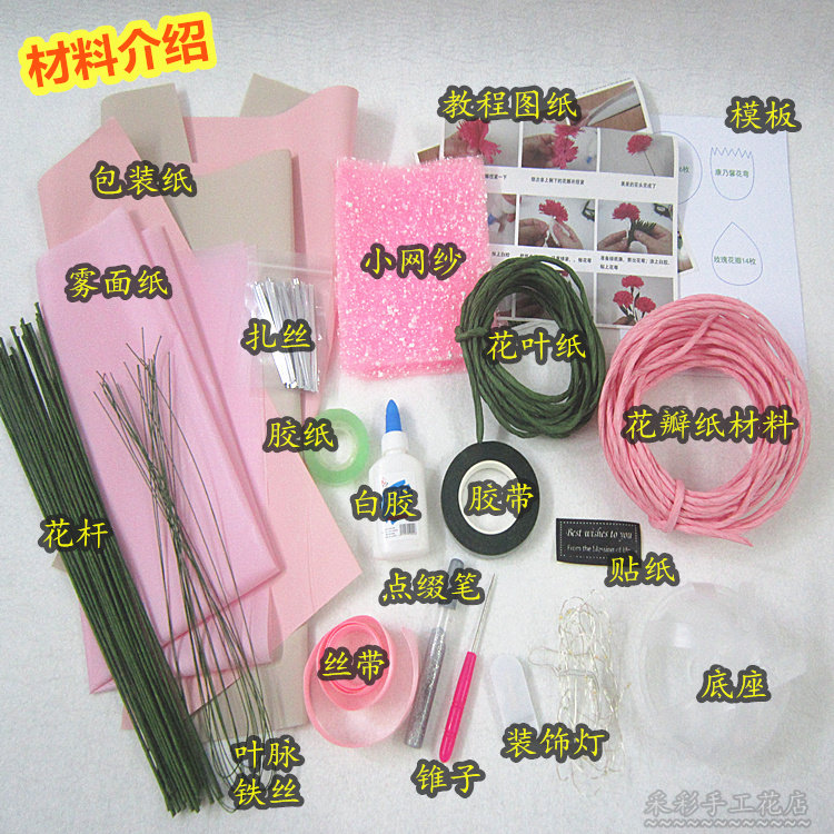 Paper Vine Wrinkled Paper Handmade Flower Material Suit Paper Art DIY Rose Cornary Blended Flower Bouquet for Learning Film
