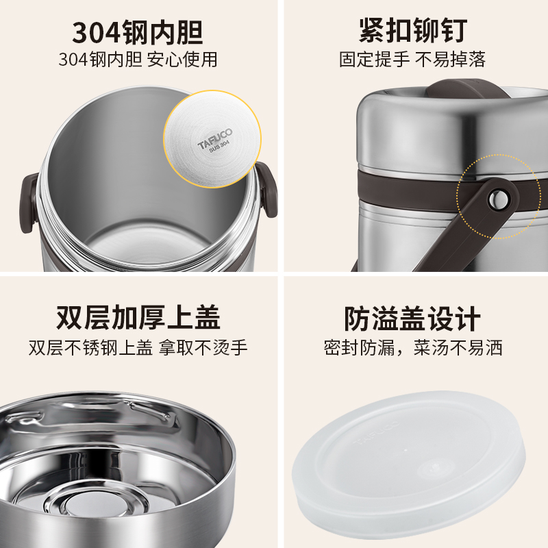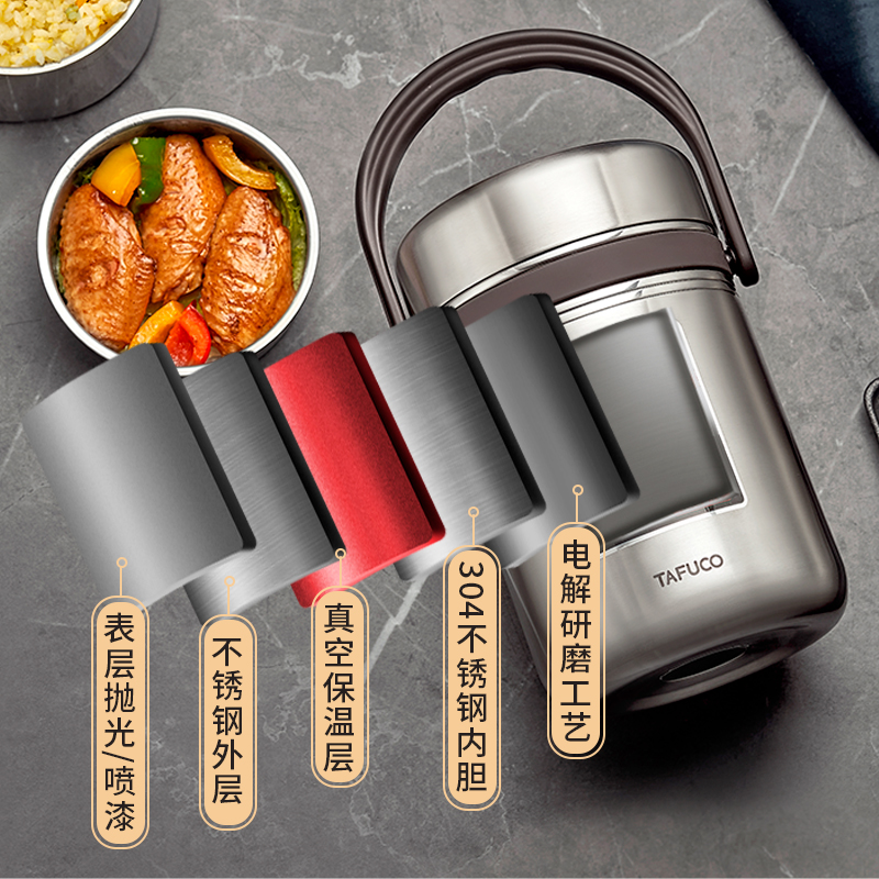 Japan Taifu Gao 304 stainless steel insulated lunch box barrel 12 24 hours super long to work home multi-layer soup bucket large