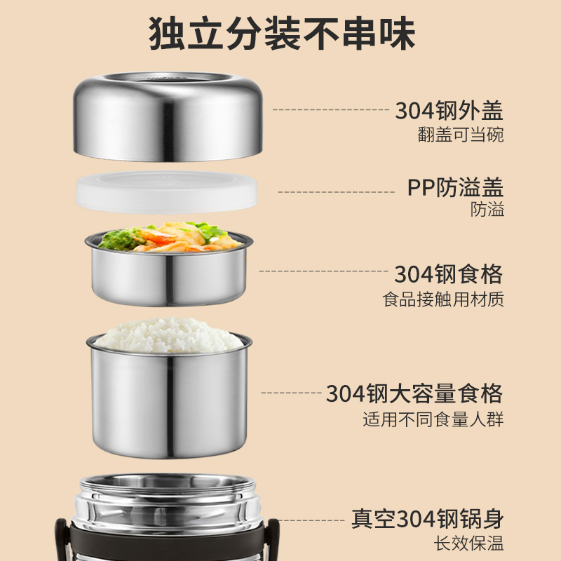 (Upgraded) 1.6L stainless steel color (send insulation bag + tableware)