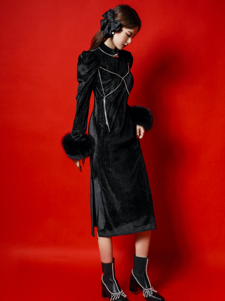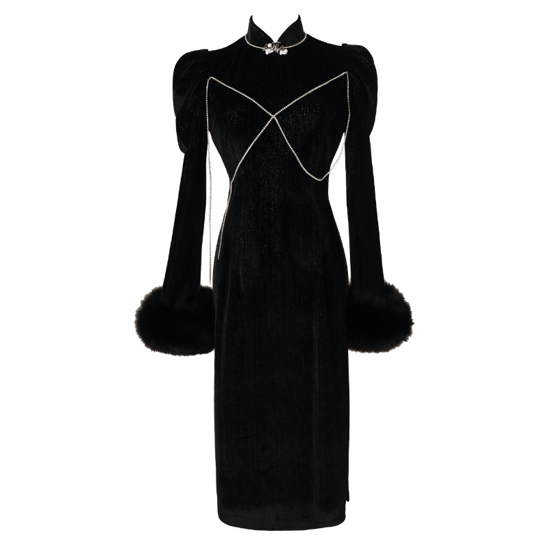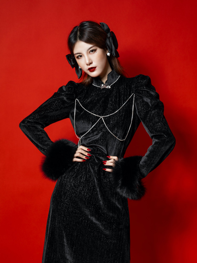 12 Custom Qipao Black Cool Year President's Edition Foreign Dress 2021 Autumn Winter New Girl Versailles