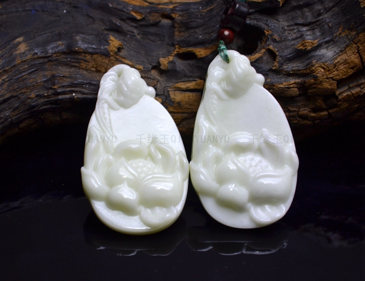 Lantian jade lotus lotus lotus root sweater chain pendant pendant natural Shaanxi Xi'an Lantian jade