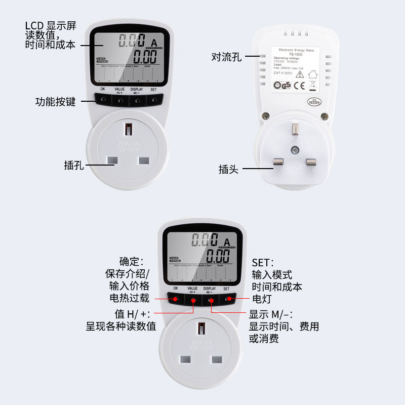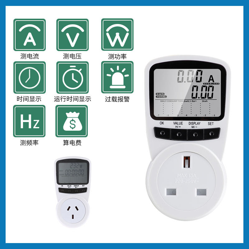 Multifunctional metering socket creative household billing device intelligent power detector electric energy meter voltmeter ammeter
