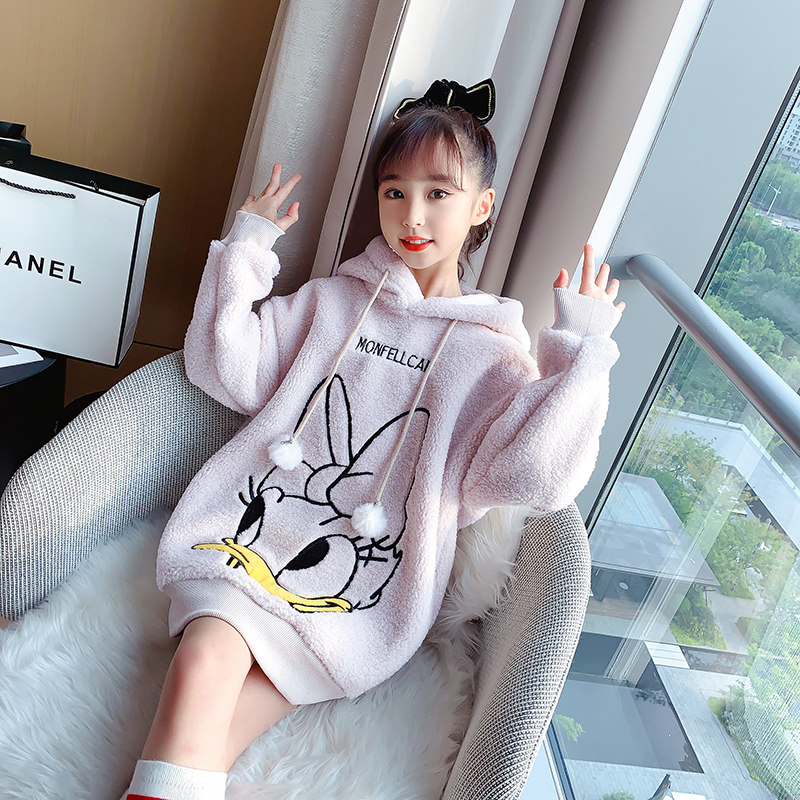 Girls' jacket plus thickness 2022 new Korean tide in the autumn and winter warm long sweater