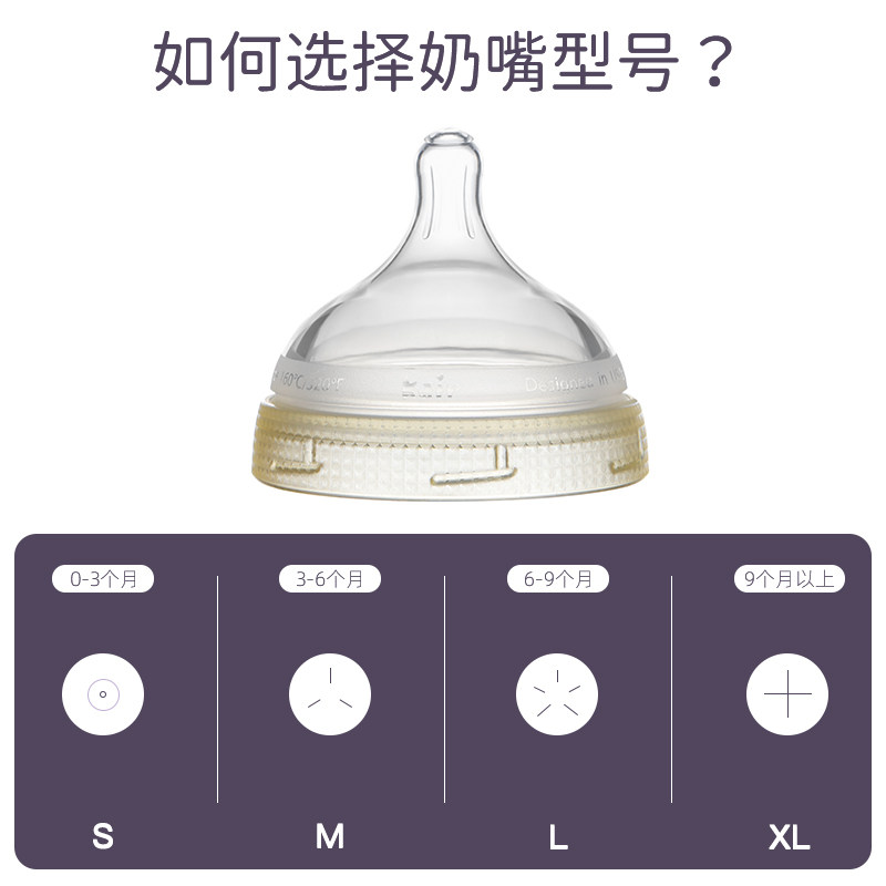 150ml comes with s-size nipple + scale 150ml comes with s-size nipple