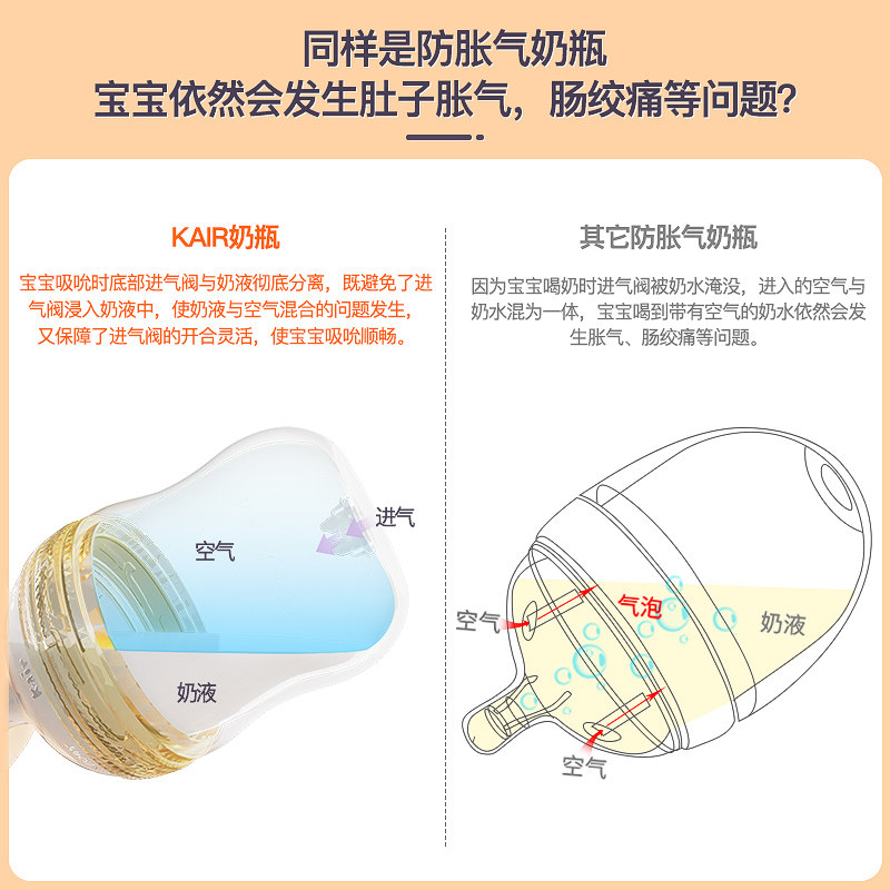 Kair silicone bottle newborn baby wide caliber baby bottle anti-flatulence choking milk ppsu resistant to falling 0-6 months
