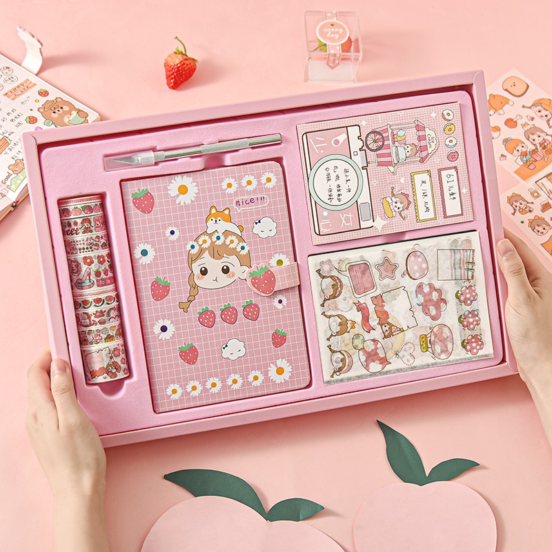 Chestnut Jun hand account gift box set network Red Girl heart sticker combination cartoon cute hand account decoration material ins Wind student stationery set box notebook sticker small pattern stationery cheap