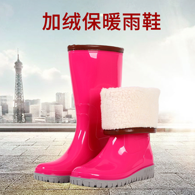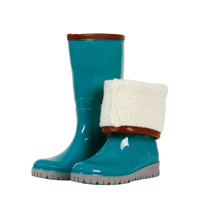 Water shoes women's autumn and winter plus cotton water boots fashion medium-tube rain boots non-slip plus velvet rain boots high-tube rubber shoes thickened overshoes