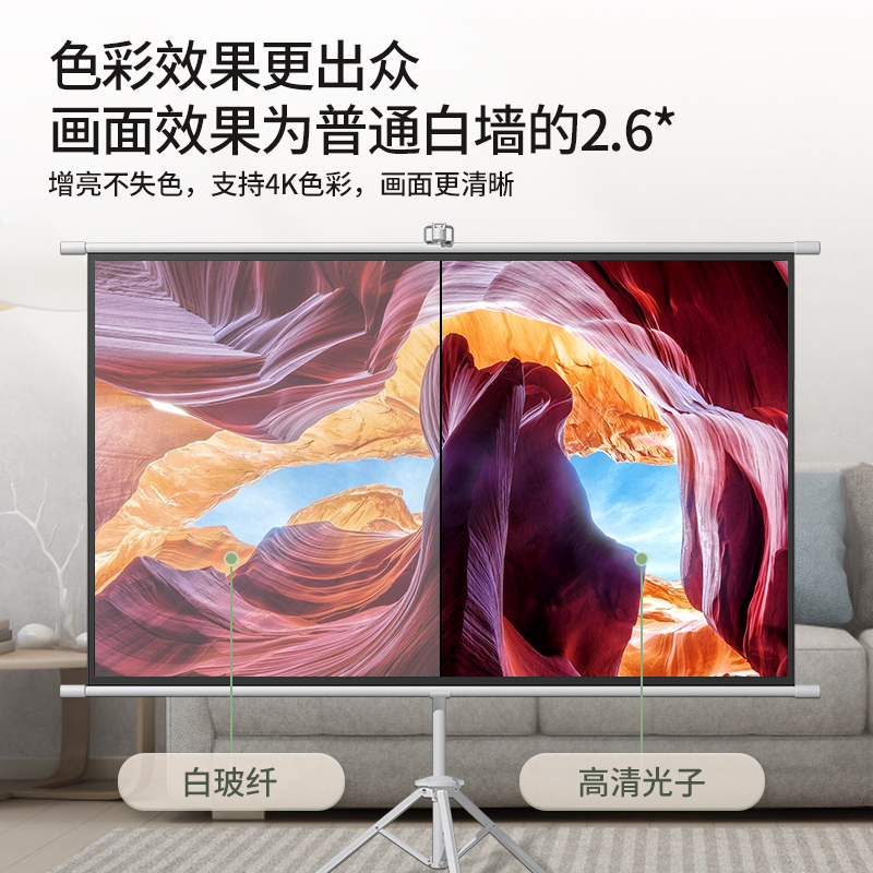 Polar Rice Projection Bracket Curtain Cloth Home Floor Mobile Portable Free Punching Can Wall-mounted 72 84100 Inch HD Bedroom Projection Curtain Apply Extreme Rice Projection Curtain Anti-Light Office Outdoor Curtain