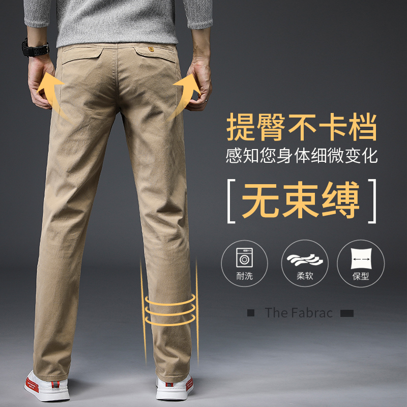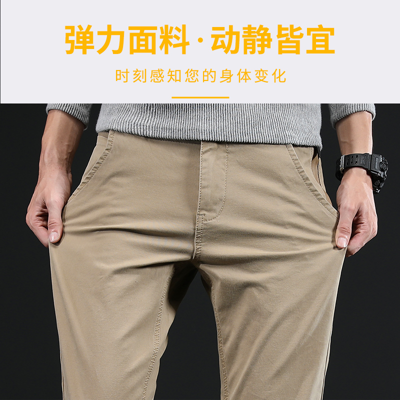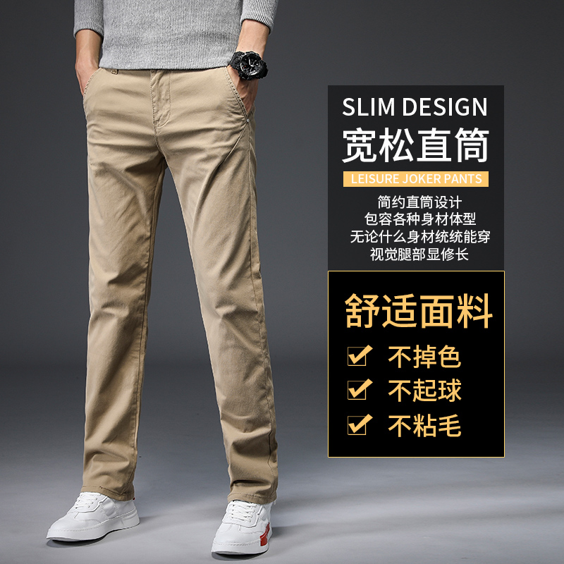 Autumn cotton casual pants men's loose straight trend all-match khaki elastic pants men's spring and autumn thick trousers