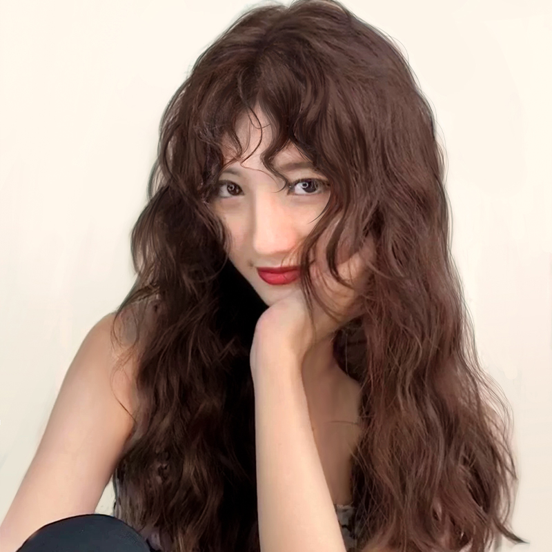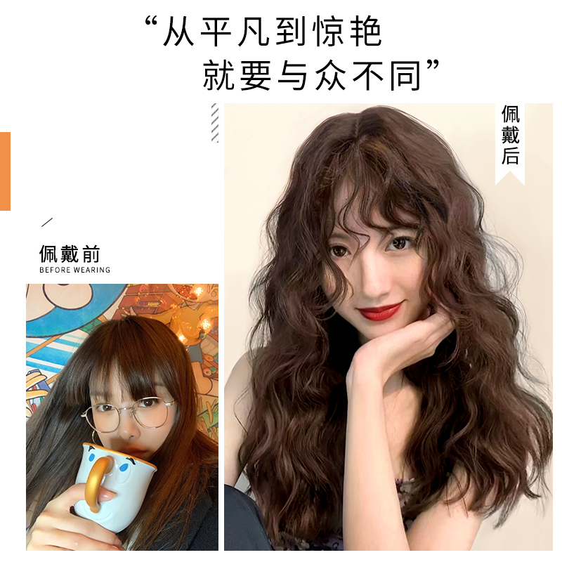 Wig female hair full head cover natural round face Net red long curly hair big wave natural fluffy wool roll wig set