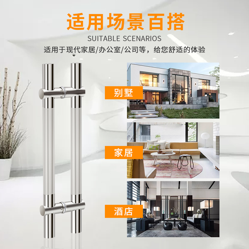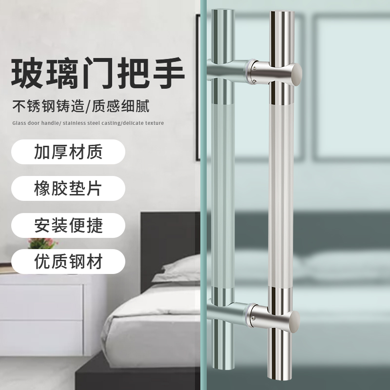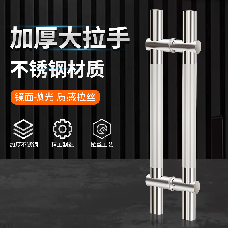 Glass door handle thickened stainless steel hole distance adjustable store Push Ramen store Grand handle office door knob-Taobao