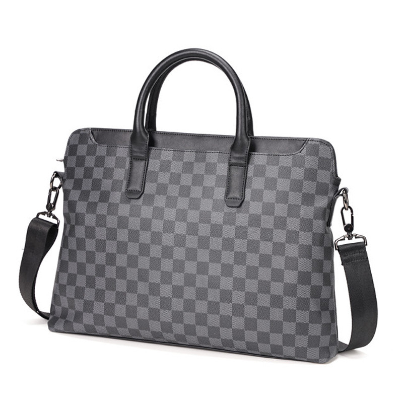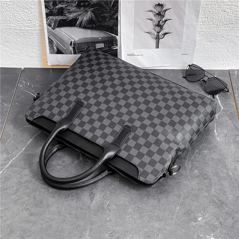 Hong Kong leather men's portable briefcase document computer bag light business trip shoulder bag lattice men's bag