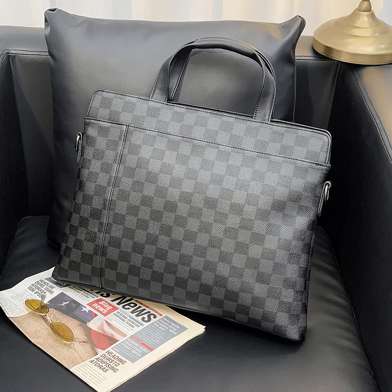 Hong Kong leather 2020 plaid briefcase new one-shoulder men's bag handbag oblique business leisure business trip