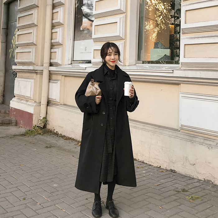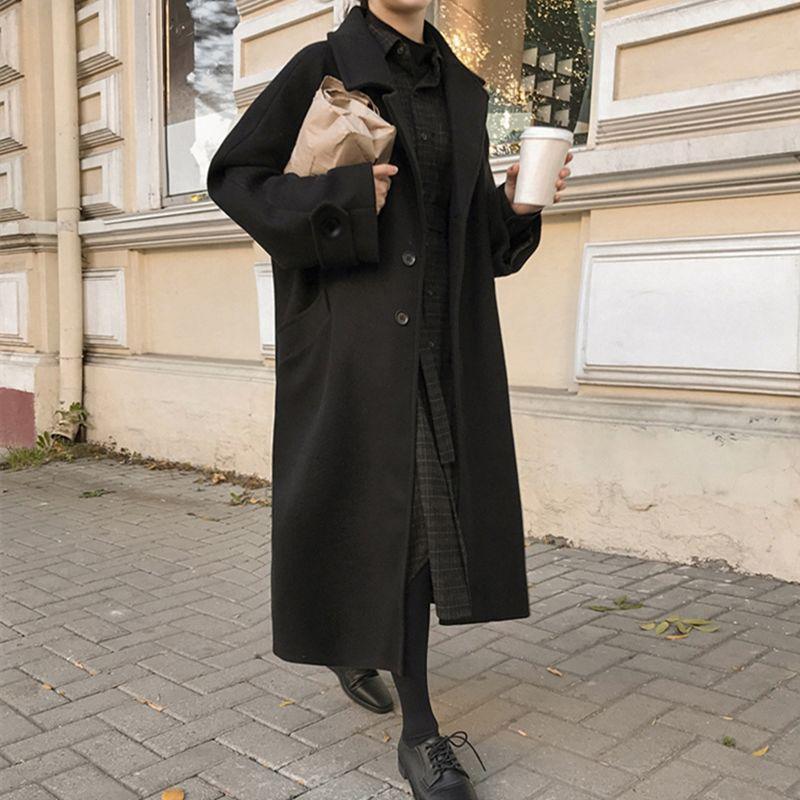 Hepburn wind wool coat women's long version of the 2020 autumn and winter new Korean version loose and wild black coat thickened