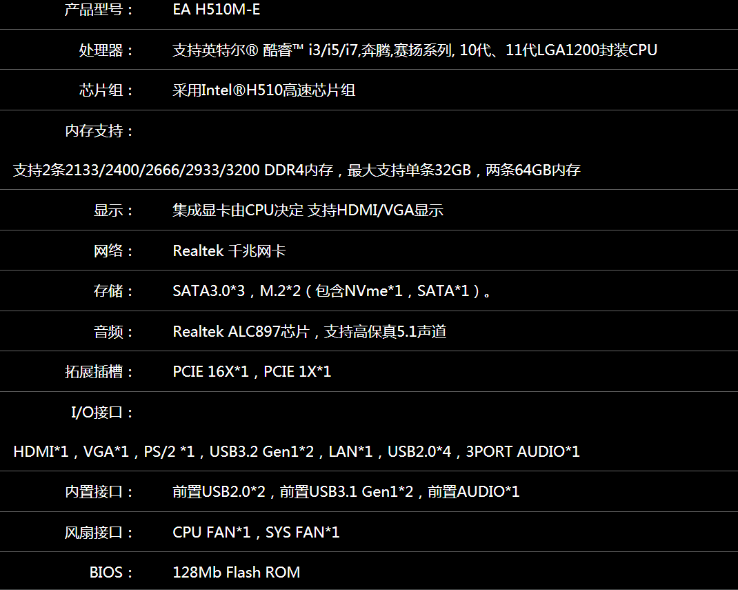 New spot Elsa motherboard H510M-E supports 1011 generation I3I5I7 processor 1200 with VGAHDMI