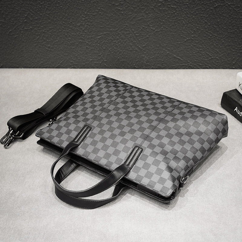 Hong Kong Genuine Leather Men's Bag Business Men's Handbag Briefcase Cross Section Single Shoulder Bag Slanted Satchel Plaid