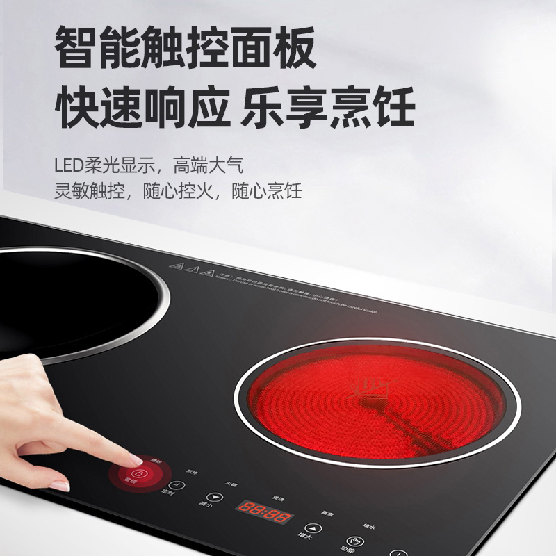 Black 2325 double induction cooker left concave right flat 2327 double plane induction cooker 2519 left plane induction cooker right plane black crystal stove 25D8 left plane induction cooker right plane
