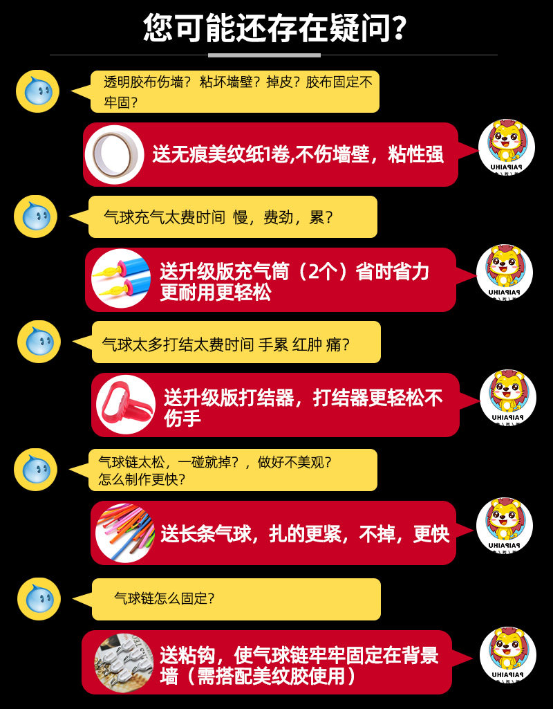 Types of balloons and accessories: