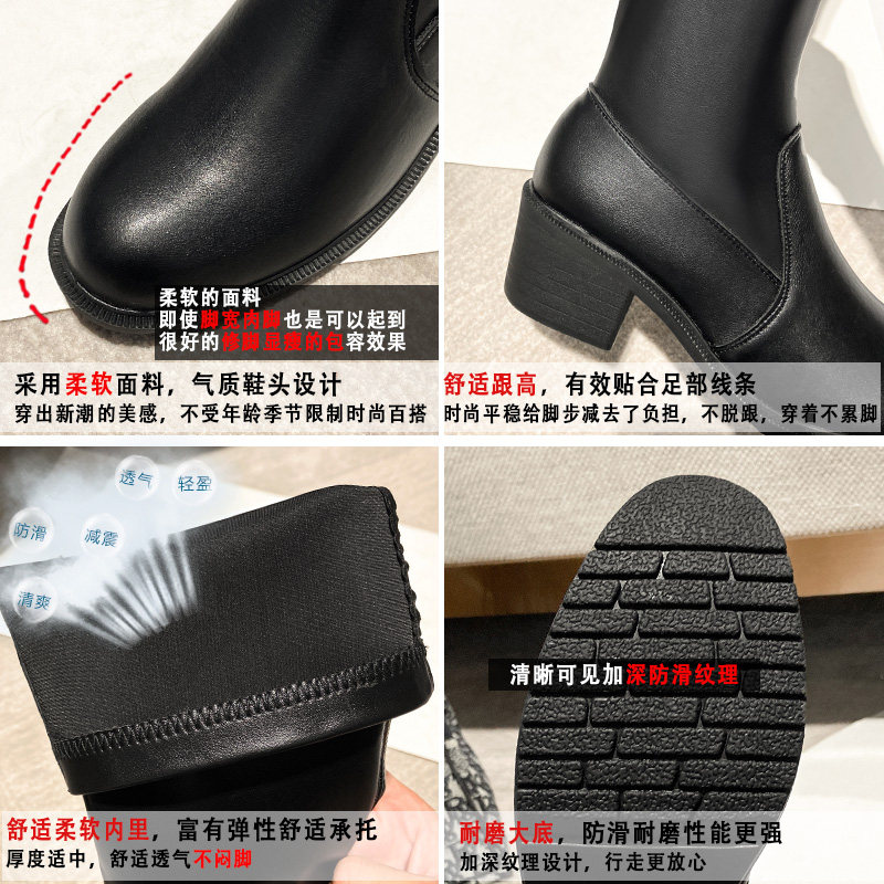 Knight boots women's 2021 new high-heeled thick-heeled but knee mid-tube boots thin section half-height short short boots