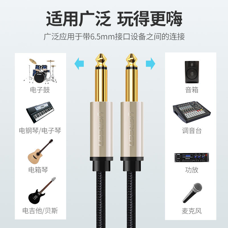 Green-linked guitar cable noise reduction performance electric box audio 2 3 meters 10 mixer wooden bass 6 5mm audio cable