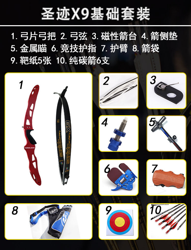 x9 anti-trarch handle one (note color) x9 anti-trarch sheet pair (note pound value) x9 Mark Package package x9 Basic package x9 Professional package x9 Bow Sheet Bow to the bow strings