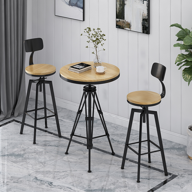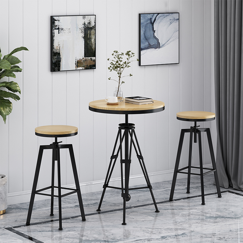 American casual high-legged table and chair combination adjustable lifting bar solid wood wrought iron milk tea coffee loft industrial wind
