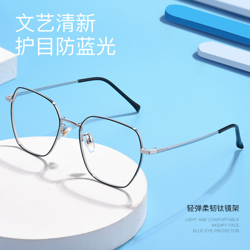 Anti-Blu-ray glasses Men's big frame slim flat light eyes No degree anti-fatigue ultralight pure titanium vegan eye frame female