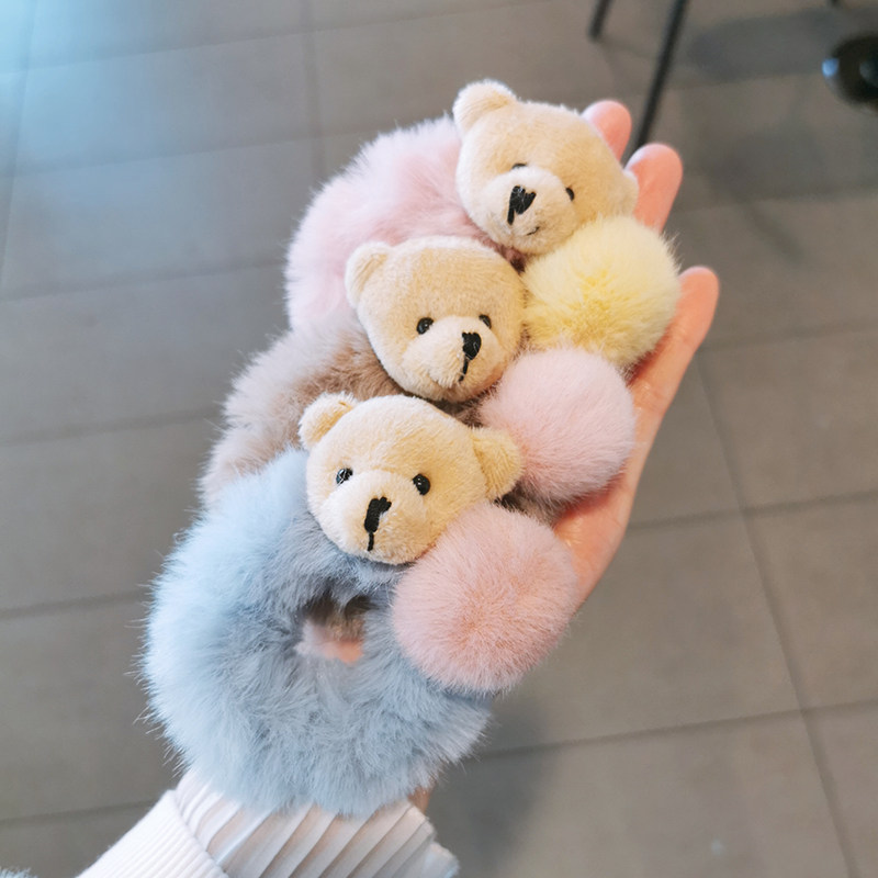 Korean Version Cute Little Bear Plush Hair Ring Sweet Mesh Red Son Tie Hair Leather Fascia Hair Leather Around Hair Circles Hair Circles Leather Sleeve Women