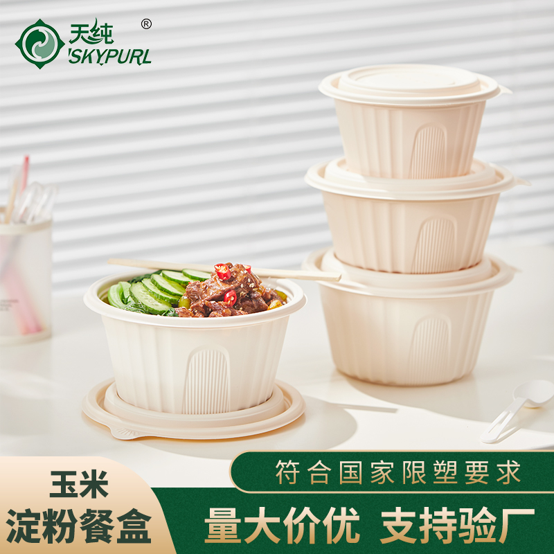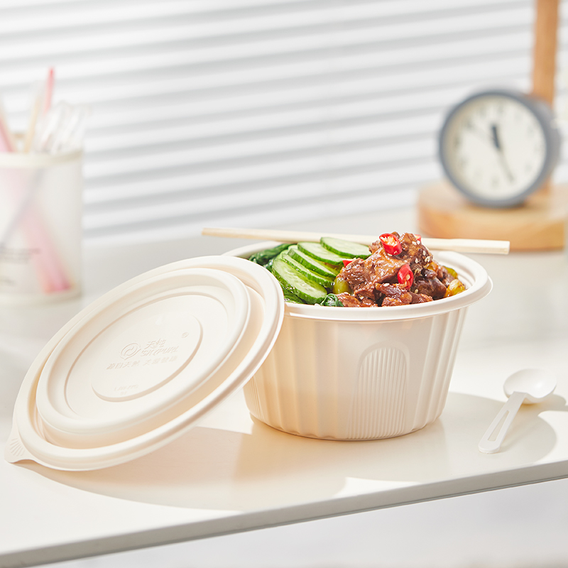 Heathen Pure Disposable Bowl Soup Bowl with lid dining box Packing Box Environmentally Friendly Round Bowls and Chopsticks Outside of Porridge Bowl Rice Flour Lunch Box