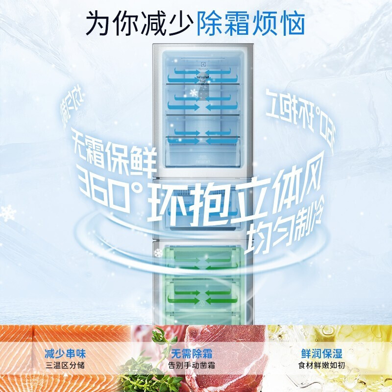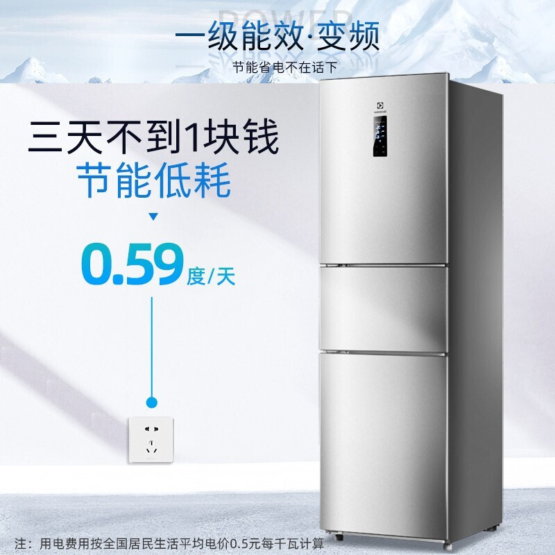 Electrolux 228-liter three-door refrigerator air-cooled frost-free level 1 energy-saving double inverter refrigerator