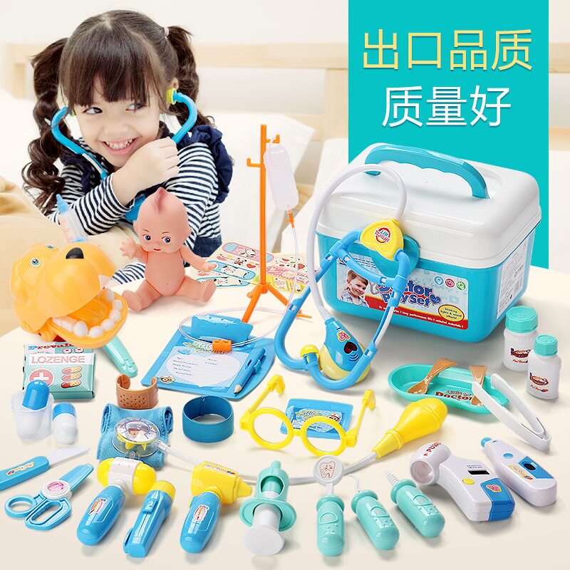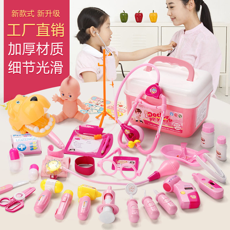Children's doctor's toy sets group little girl boy nurse beating the needle simulation stethoscope Ambulance dressed as a family wine doctor