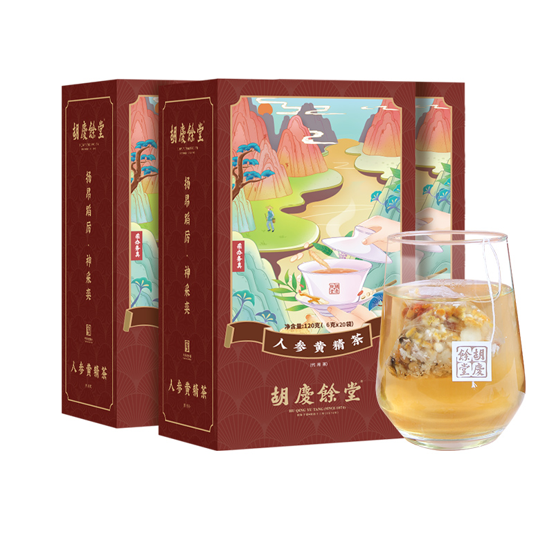 Hu Qingyutang Ginseng Polygonatum Teabag Tea Bags Healthy Tea Nourishing Tea Bag Goji Berry Poria Polygonatum 120g*3 Boxes