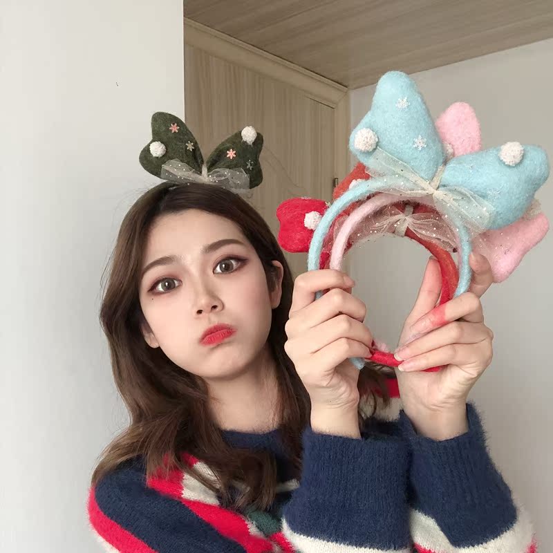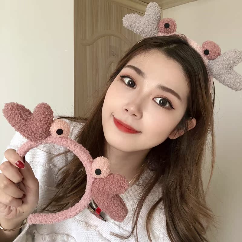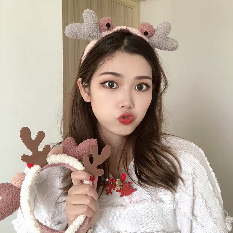 Face wash headband female Korean cartoon headband net red cute antlers funny plush headdress Christmas hair accessories creative