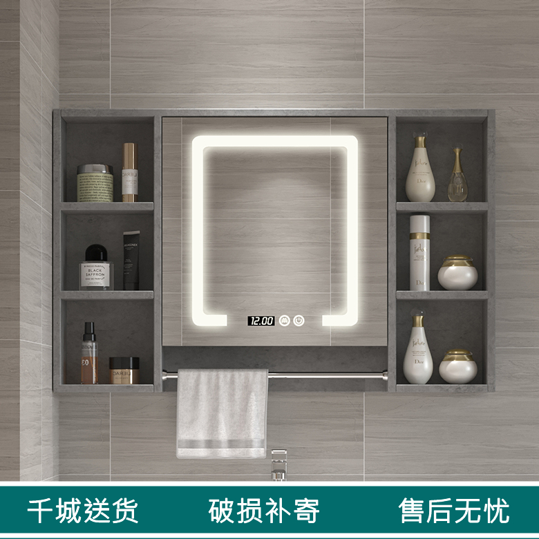 Smart Bathroom Mirror Cabinet Mirror Case Hanging Wall Make-up Room Mirror Rack Bathroom Wall-mounted Solid Wood Storage Mirror Cabinet